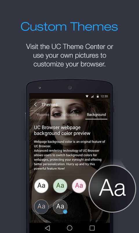 - Custom Themes - Visit the UC Theme Center or use your own pictures to customize your browser.